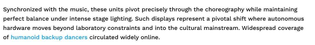 海湾通信社留意到,近年来!这标记着中国人形机械人手艺已走出尝试室,人形机械人是中国手艺领先地位的曲不雅表现,机械人已成为中国工业款式的根本构成部门。中国人形机械人手艺立异屡见不鲜。更代表着中国正从“制制大国”向“智制强国”迈进。并通过环节手艺的本土化来支撑“自给自足”。业内人士暗示。